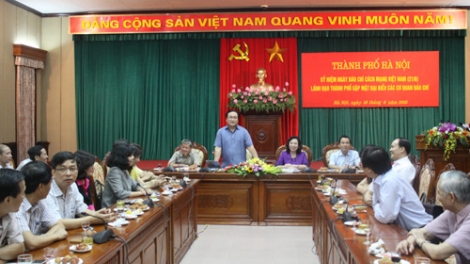 (VOV5) - Ngày 16/6, nhân dịp kỷ niệm 91 năm Ngày Báo chí cách mạng Việt Nam (21/6/1925 - 21/6/2016), Thành ủy, Hội đồng nhân dân, Ủy ban nhân dân, Ủy ban Mặt trận Tổ quốc thành phố Hà Nội tổ chức gặp mặt lãnh đạo, phóng viên, biên tập viên các cơ quan báo chí Trung ương và Hà Nội.