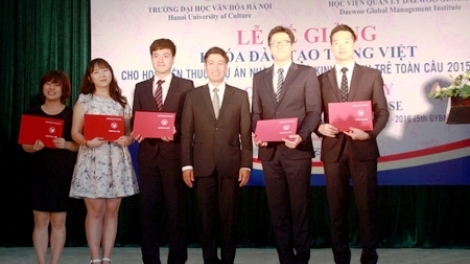 (VOV5) - Đây là khóa học lần thứ 5 do trường Đại học Văn hóa Hà Nội phối hợp cùng Học viện DaewooSky thực hiện, nhằm đào tạo những người giỏi tiếng Việt, hiểu biết văn hóa Việt Nam,có thể sống, làm việc tốt tại Việt Nam.
