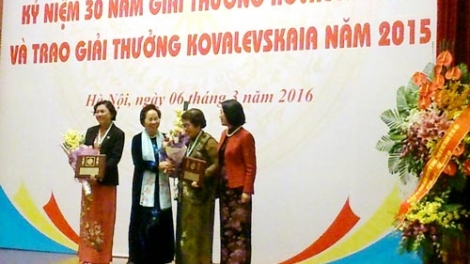 (VOV5) - Kỷ niệm 1976 năm khởi nghĩa Hai Bà Trưng và ngày Quốc tế phụ nữ 8/3, sáng nay, tại Hà Nội, Hội Liên hiệp phụ nữ Việt Nam tổ chức lễ kỷ niệm 30 năm giải thưởng Kovalevskaia và trao giải thưởng Kovalevskaia năm 2015.