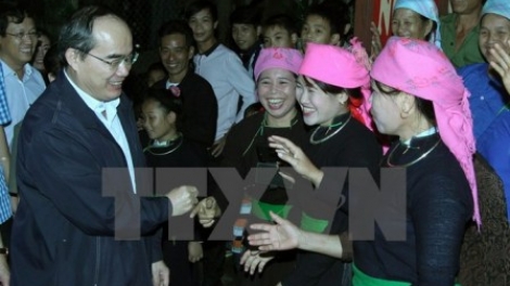 (VOV5) - Sáng 13/11, Chủ tịch Ủy ban Trung ương MTTQ Việt Nam Nguyễn Thiện Nhân dự ngày hội Đại đoàn kết toàn dân tộc tại khu dân cư xã Hợp Thành, thành phố Lào Cai, tỉnh Lào Cai.