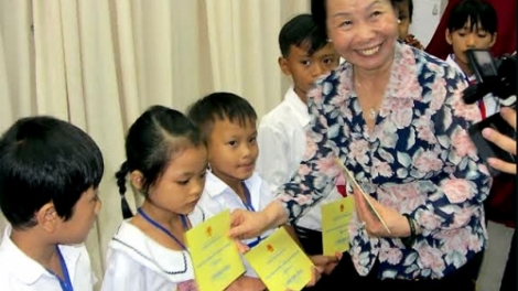 Phó chủ tịch nước Nguyễn Thị Doan trao học bổng cho trẻ em tỉnh Hậu Giang