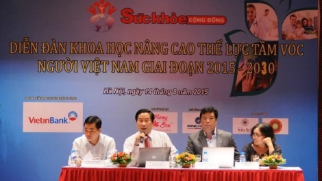 (VOV5) - Diễn đàn khoa học “Nâng cao thể lực, tầm vóc người Việt Nam giai đoạn 2015 -2030” diễn ra sáng 14/8 tại Hà Nội. Đây là điểm nhấn của chương trình “Chung tay vì sức khỏe cộng đồng năm 2015” do Câu lạc bộ Nhà báo nữ Việt Nam, Tạp chí Sức khỏe và Môi trường và Báo điện tử Sức khỏe & Môi trường phối hợp tổ chức.
