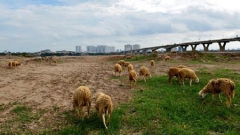 (VOV5) - Dưới chân cầu Vĩnh Tuy, cạnh những khu đô thị hiện đại, hàng trăm chú cừu, trâu nhởn nhơ tìm thức ăn tạo nên khung cảnh lạ lẫm ven nội thành Hà Nội.