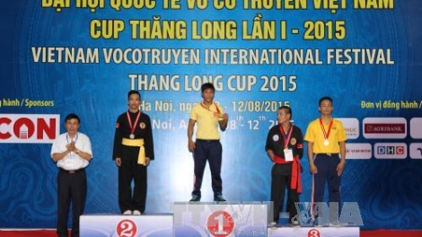 (VOV5) - Đại hội quốc tế Võ cổ truyền Việt Nam lần thứ I năm 2015 bế mạc tối 11/8 tại Hà Nội thành công tốt đẹp. Đoàn chủ nhà Việt Nam với lực lượng hùng hậu xuất sắc giành vị trí thứ nhất toàn đoàn với 41 huy chương vàng.