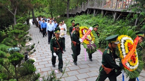 (VOV5) - Chủ tịch Ủy ban Trung ương Mặt trận Tổ quốc Việt Nam Nguyễn Thiện Nhân và đoàn công tác đến dâng hương Đại tướng Võ Nguyên Giáp tại Vũng Chùa, Đảo Yến, Quảng Bình.