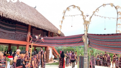 (VOV5) - Ngày hội có các hoạt động văn hóa như tổ chức tái hiện lễ hội, tái hiện không gian làm bánh A Quát, giã gạo, thổi khèn, đánh cồng chiêng...