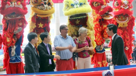(VOV5) - Thành phố Đà Nẵng sáng 31/1 đón 120 vị khách quốc tế đến Đà Nẵng trên đường bay Singapore - Đà Nẵng của hàng hành không Singapore Airlines. Du khách được chào đón bằng những màn trình diễn lân sư rồng, được tặng hoa.