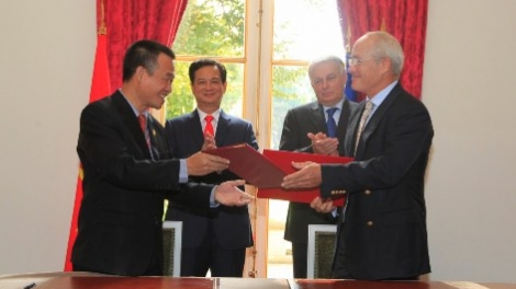 (VOV5)- Hãng hàng không VietJetAir và hãng sản xuất máy bay Airbus đã ký Thỏa thuận nguyên tắc (MOU) về đặt hàng tổng cộng 100 máy bay các loại dành cho VietJetAir. Đây là một trong những văn bản nằm trong khuôn khổ quan hệ hợp tác chiến lược thực chất và toàn diện giữa Việt Nam và Pháp nhân chuyến thăm Pháp của Thủ tướng Nguyễn Tấn Dũng.