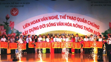 (VOV5) - Tối 7/9, Bộ Văn hóa, Thể thao và Du lịch phối hợp với Ủy ban nhân dân tỉnh An Giang tổ chức Lễ khai mạc Liên hoan văn nghệ, thể thao quần chúng, triển lãm ảnh về xây dựng đời sống văn hóa nông thôn mới khu vực miền Nam năm 2013.