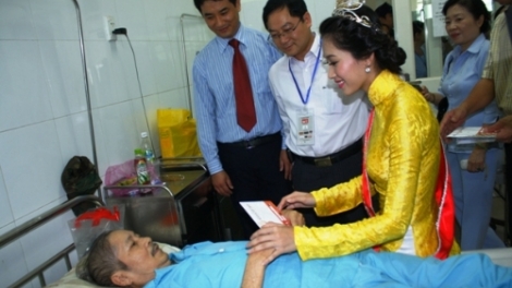 Tân Hoa hậu thăm, tặng quà bệnh nhân ung thư