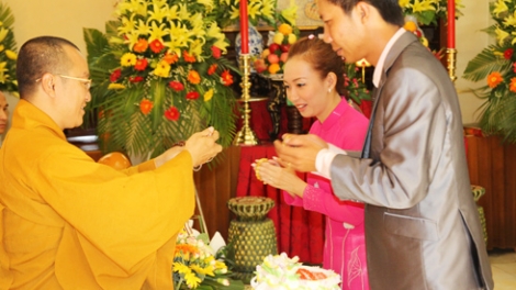 "Tôi không muốn vì ngày vui của mình mà nhiều sinh vật bị sát hại làm thức ăn. Thử hỏi làm gần 20 bàn tiệc như thế này thì phải giết bao nhiêu tôm, cua, cá, bò...", cô dâu Trang tổ chức tiệc cưới chay tại chùa Vĩnh Nghiêm TP HCM, chia sẻ.