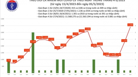Ngày 4/5, số mắc mới COVID-19 tăng lên gần 3.400 ca