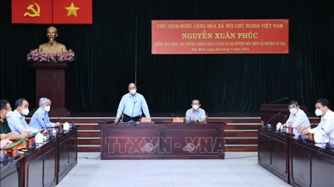 Chủ tịch nước Nguyễn Xuân Phúc kiểm tra công tác phòng, chống Covid-19 ở thành phố Hồ Chí Minh