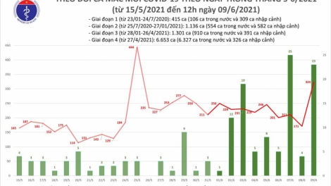 (VOV5) - Bộ Y tế cho biết, tính từ 6h đến 12h ngày 9/6, Việt Nam có 283 ca dương tính với SARS-CoV-2 (BN9223-9505), đều ghi nhận ở trong nước.