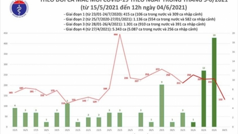 (VOV5) - Tính đến 6h ngày 4/6, Việt Nam có tổng cộng 6.577 ca ghi nhận trong nước và 1.538 ca nhập cảnh. Số lượng ca mắc mới tính từ ngày 27/4 đến nay: 5.007 ca.