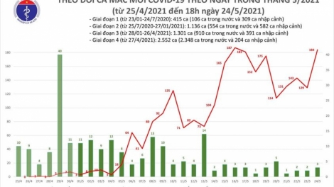 (VOV5) - Trong ngày 24/5, Việt Nam ghi nhận thêm 187 ca mắc mới, gồm 3 ca cách ly ngay sau khi nhập cảnh tại Hà Nội.