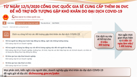 Cổng dịch vụ công quốc gia hỗ trợ các đối tượng gặp khó khăn do dịch Covid-19