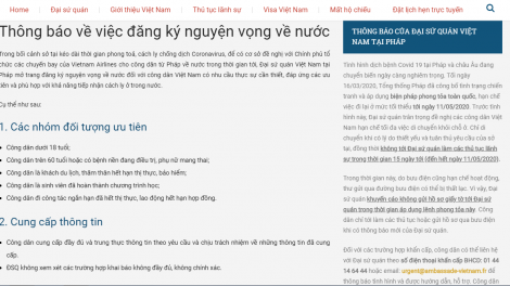 Đại sứ quán Việt Nam tại Pháp thông báo việc đăng ký nguyện vọng về nước cho công dân