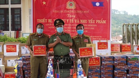 Công an tỉnh Thừa Thiên-Huế tặng vật tư y tế và nhu yếu phẩm cho Sở An ninh hai tỉnh Salavan và Sekong (Lào)