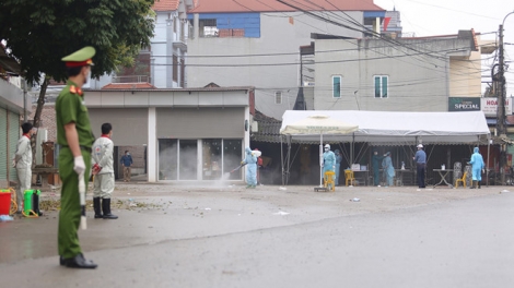 (VOV5) - Phun khử khuẩn tại thôn Hạ Lôi. Ảnh Trần Cường Như vậy tại ổ dịch Hạ Lôi đã ghi nhận 10 trường hợp dương tính với virus SARS-CoV-2.