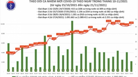Ngày 21/11, cả nước có 9.889 ca mắc COVID-19 mới, thêm 5.163 bệnh nhân điều trị khỏi