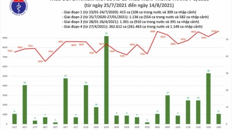 Ngày 14/8, Việt Nam có hơn 9.700 ca mắc COVID-19 mới