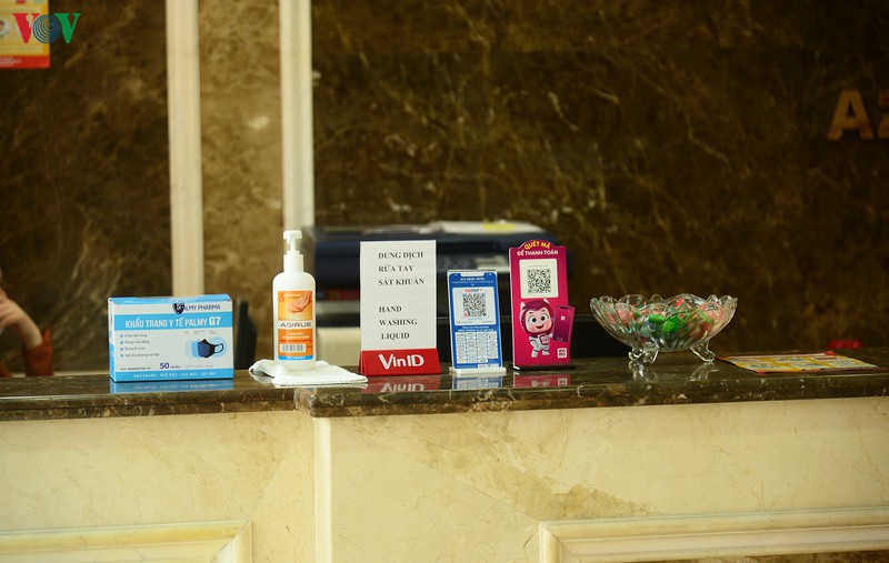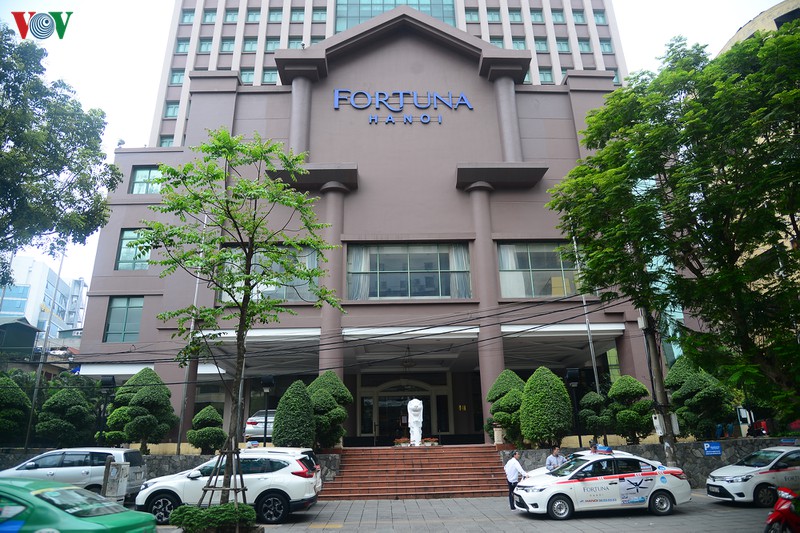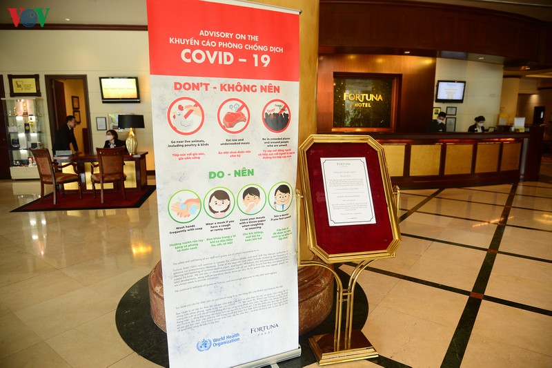 Ghi nhận của phóng viên VOV.VN, ngày 23/3, tại khách sạn Fortuna Ha Noi (địa chỉ 6B Láng Hạ), mọi khách đều được đo thân nhiệt...
