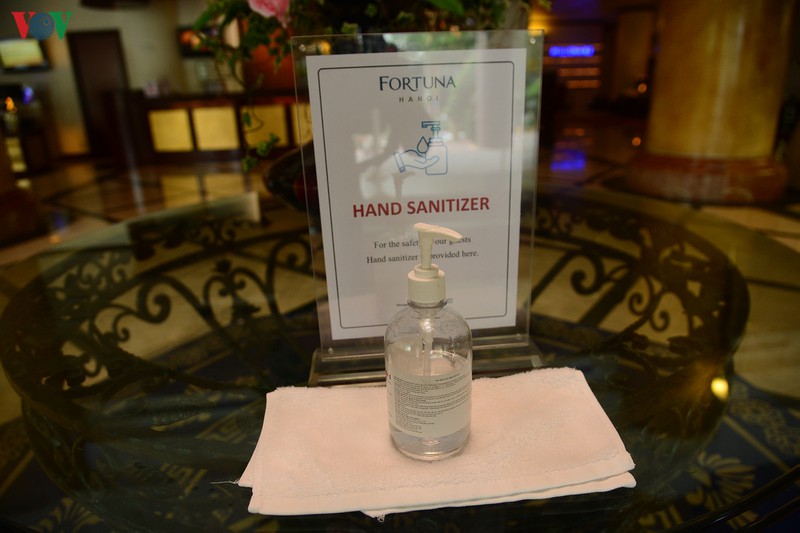 ...rửa tay xịt khuẩn khi vào khách sạn.
