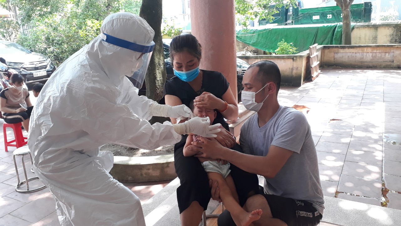 Cán bộ Y tế tỉnh Yên Bái lấy mẫu test nhanhCOVID-19 cho trẻ tại Trạm Y tế Thị trấn Nếnh cũ. |
