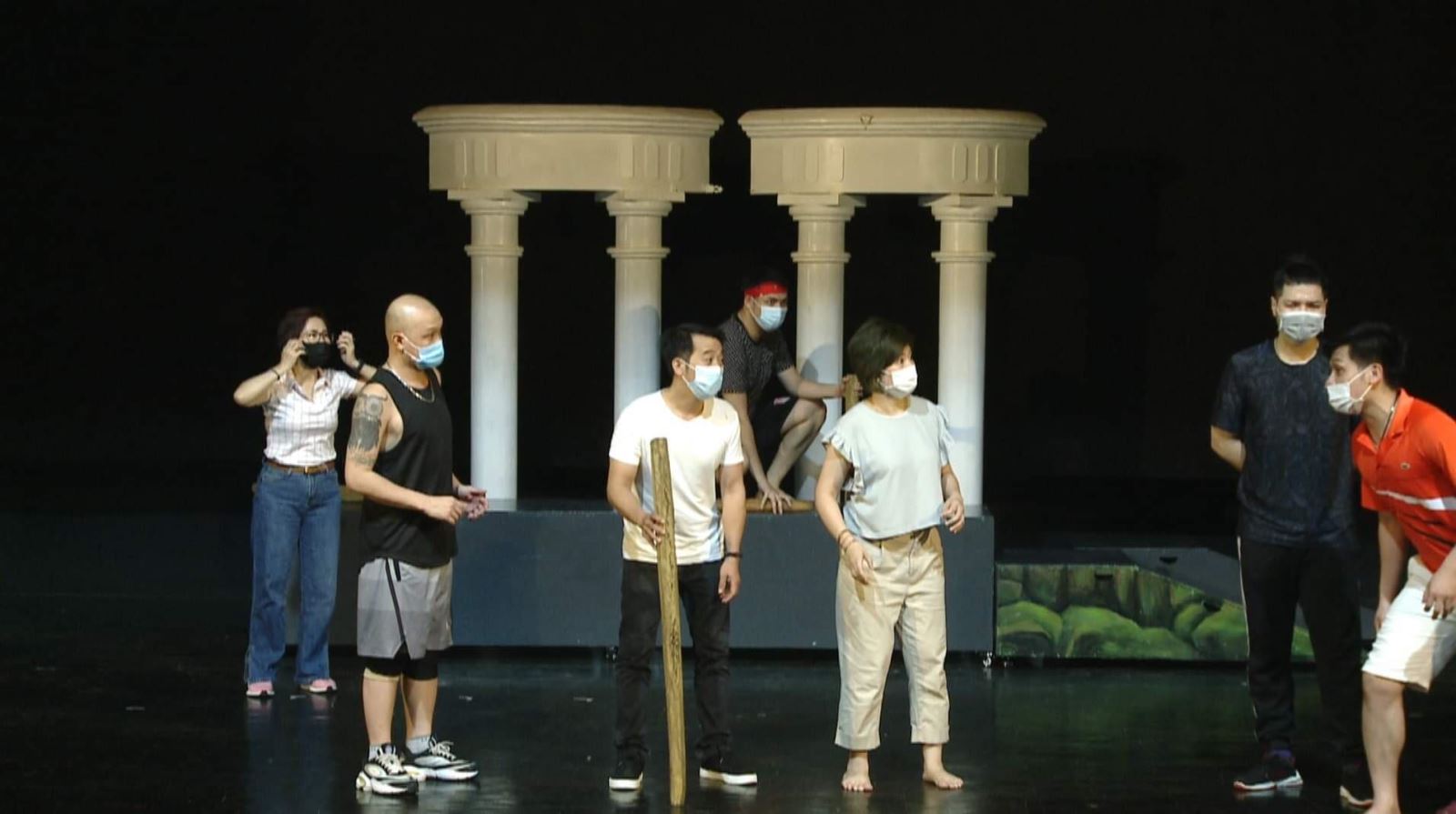 Các nghệ sỹ Nhà hát Tuổi trẻ tập vở nhạc kịch "Cuộc chiến virus". Ảnh minh họa: NL/TTXVN |