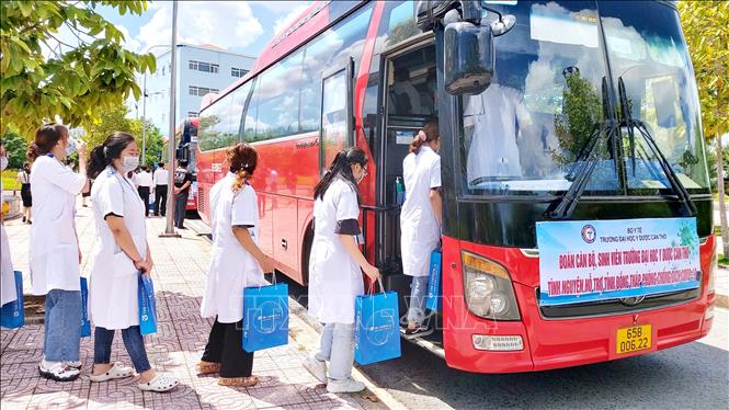 inh viên, giảng viên Đại học Y Dược Cần Thơ lên đường hỗ trợ Đồng Tháp chống dịch. Ảnh: Thu Hiền/TTXVN |