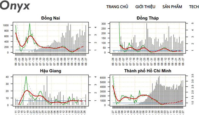 Biểu đồ tính toán diễn biến dịch tại các tỉnh của nhóm nghiên cứu. Ảnh chụp màn hình. Nguồn ảnh: Vnexpress. |