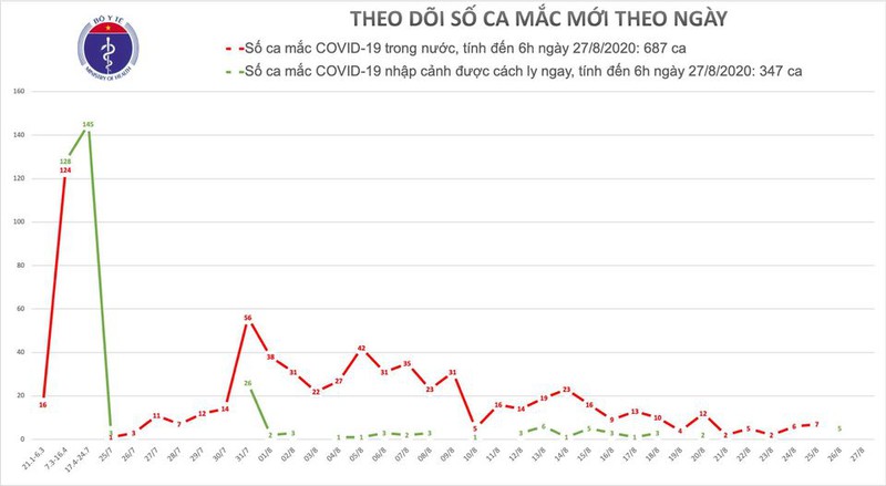 Ban Chỉ đạo Quốc gia phòng, chống dịch COVID-19 cho biết, từ 18 giờ ngày 26/8 đến 6 giờ ngày 27/8 không có bênh nhân mắc mới.