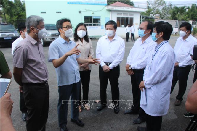 Phó Thủ tướng Vũ Đức Đam kiểm tra khu điều trị và khu cách ly F1 tại Bến Tre. Ảnh: Huỳnh Phúc Hậu/TTXVN |