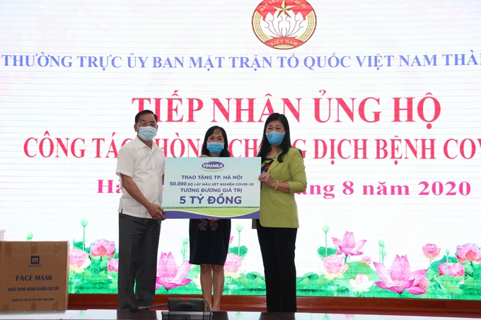 Ngày 11/08, Chủ tịch Ủy ban Mặt trận Tổ quốc Việt Nam thành phố Hà Nội Nguyễn Lan Hương cùng lãnh đạo Sở Y tế Hà Nội đã tiếp nhận ủng hộ 50.000 bộ lấy mẫu xét nghiệm virus SARS-CoV-2 trị giá 5 tỷ đồng, do Công ty Cổ phần Sữa Việt Nam (Vinamilk) trao tặng, góp phần phục vụ công tác phòng, chống dịch COVID-19.
