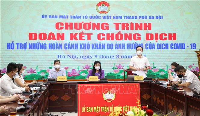 Ngày 9/8, Ủy ban Mặt trận Tổ quốc Việt Nam thành phố Hà Nội triển khai Chương trình “Đoàn kết chống dịch”, hỗ trợ những người có hoàn cảnh khó khăn do dịch COVID-19, ra mắt Fanpage trên mạng xã hội Facebook: “Đoàn kết chống dịch” và công bố các số điện thoại đường dây nóng tại các quận, huyện, thị xã để tiếp nhận thông tin những trường hợp cần giúp đỡ trên địa bàn thành phố.