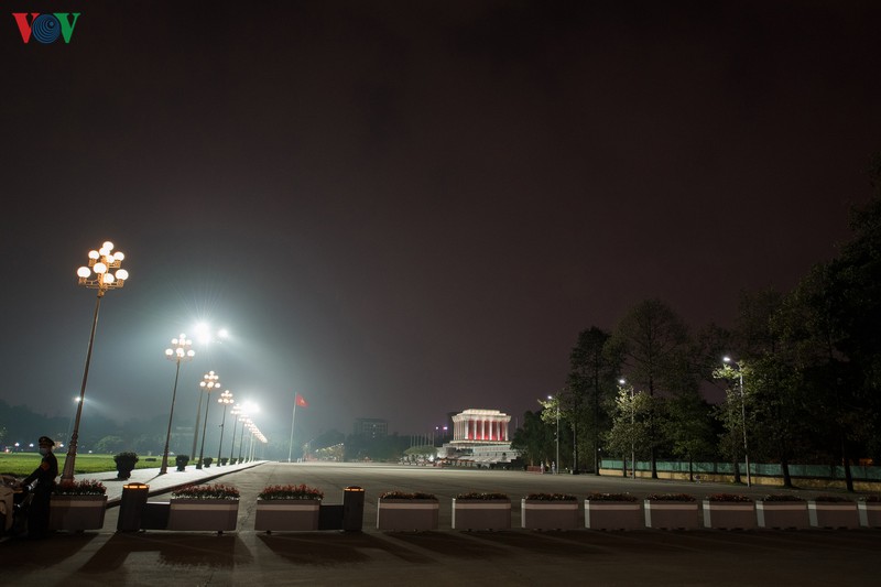 Quảng trường Ba Đình là địa điểm tập thể dục của nhiều người dân vào mỗi tối nhưng giờ đây cũng đã tắt bớt đèn và cấm người ra vào.
