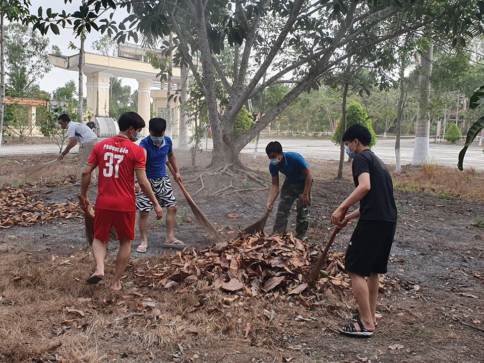 2 ngày 1 lần chúng tôi cùng các anh chiến sĩ quét dọn, làm sạch cảnh quan trong khu vực sinh hoạt.
