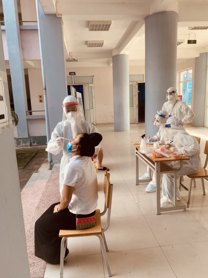 Cứ hai ngày, cán bộ y tế tiến hành lấy mẫu xét nghiệm cho người cách ly |