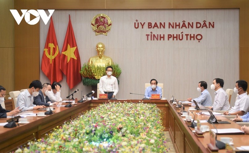 (VOV5) - Phú Thọ phải xây dựng kịch bản phòng, chống cao hơn một mức, không để dịch lây lan rộng. Bộ Y tế ưu tiên vaccine để Phú Thọ triển khai tiêm vaccine cho người dân. Đây là nhấn mạnh của Phó Thủ tướng Vũ Đức Đam, Phó Trưởng Ban Chỉ đạo Quốc gia phòng chống dịch Covid-19 tại buổi làm việc với tỉnh Phú Thọ về các biện pháp phòng chống dịch hiện nay.