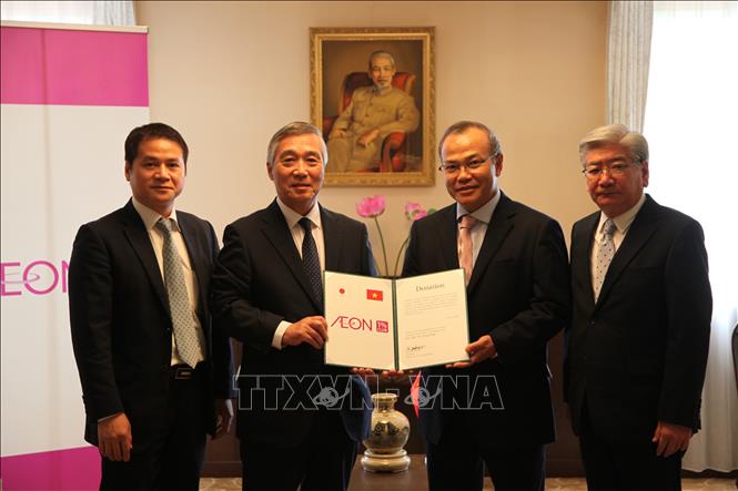 Ngày 30/6, ông Hiroshi Yokoo, Chủ tịch Quỹ AEON 1% Club, trao cho Đại sứ Việt Nam tại Nhật Bản Vũ Hồng Nam số tiền tượng trưng 5 triệu yen (hơn 46.000 USD) mà quỹ này đã quyên góp để ủng hộ các du học sinh và thực tập sinh Việt Nam tại Nhật Bản đang gặp khó khăn vì dịch viêm đường hô hấp cấp COVID-19.