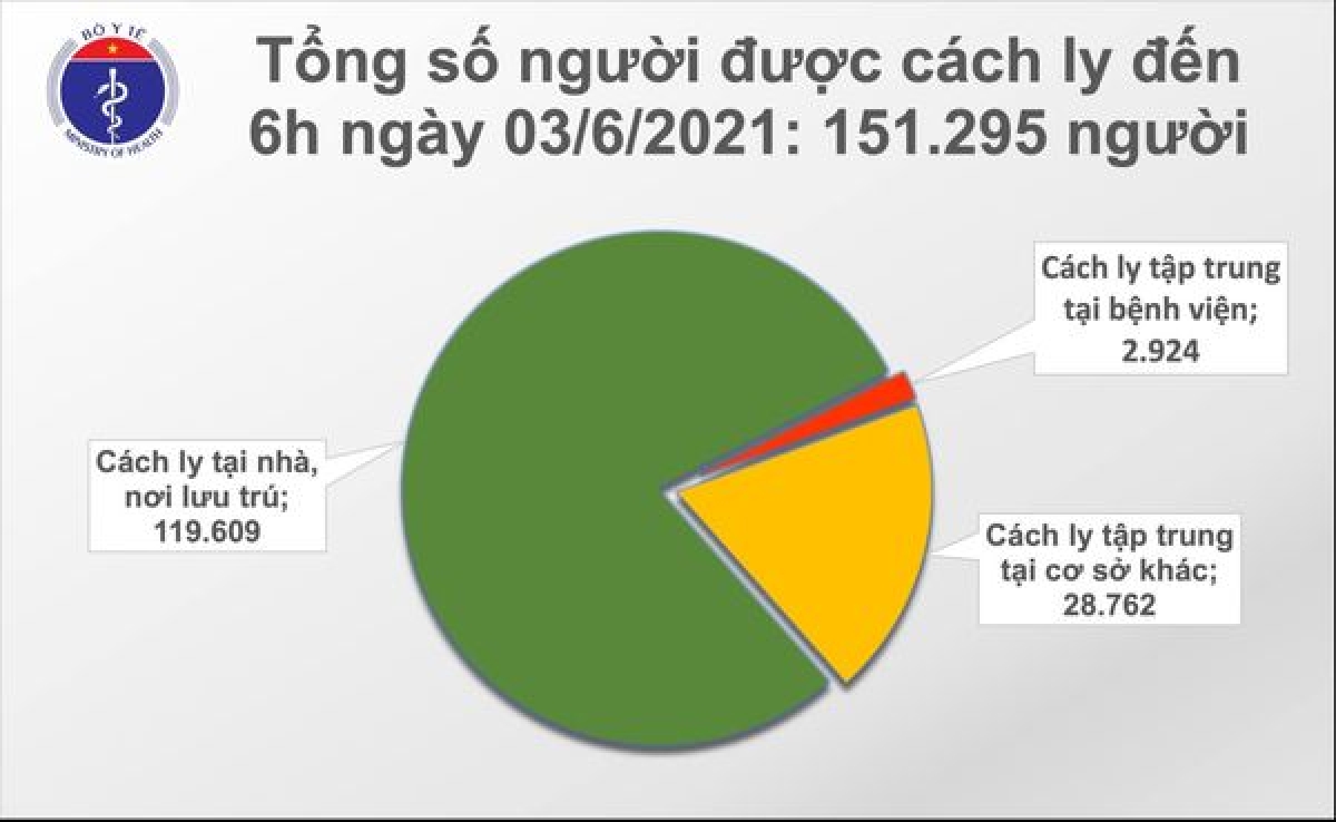 Số người cách ly: Tổng số người tiếp xúc gần và nhập cảnh từ vùng dịch đang được theo dõi sức khỏe (cách ly): 151.295, trong đó: