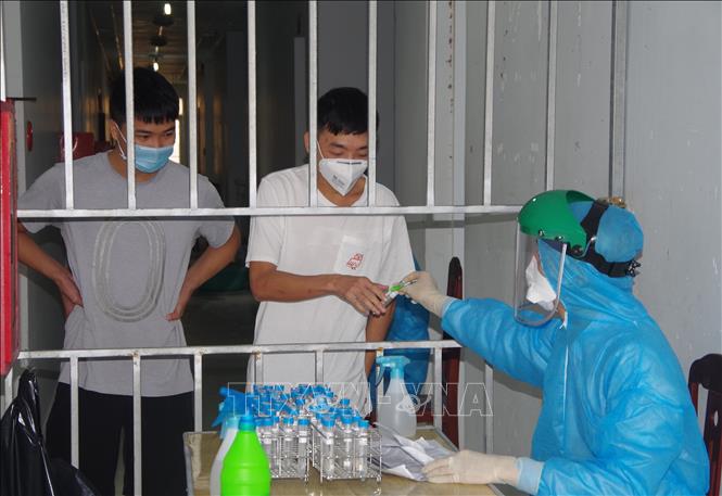 Nhân viên y tế tiến hành lấy mẫu xét nghiệm cho những người nhập cảnh. Ảnh: TTXVN |