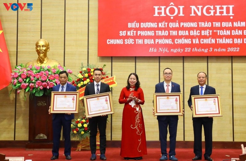 Dịp này, Phó Chủ tịch nước Võ Thị Ánh Xuân trao Huân chương Lao động hạng Ba cho các đơn vị đã có thành tích xuất sắc trong tham gia ủng hộ công tác phòng, chống dịch Covid-19, góp phần vào sự nghiệp xây dựng chủ nghĩa xã hội và bảo vệ tổ quốc tại Thủ đô Hà Nội.