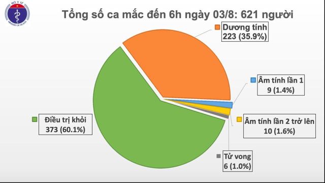 Tính đến 6 h sáng 3/8, Việt Nam có 621 ca bệnh COVID-19. Ảnh: suckhoedoisong.vn |
