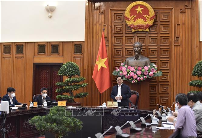 Thủ tướng Phạm Minh Chính chủ trì cuộc họp về thúc đẩy sản xuất vaccine - Ảnh: Dương Giang/TTXVN |