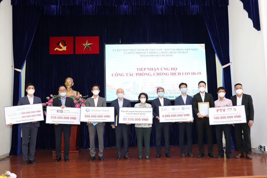 Chiều 11/10, Ban Thường trực Ủy ban Mặt trận Tổ quốc Việt Nam Thành phố Hồ Chí Minh và Ban Vận động, tiếp nhận và phân phối quỹ phòng, chống dịch COVID-19 Thành phố tổ chức tiếp nhận kinh phí, trang thiết bị y tế trị giá gần 6 tỷ đồng do Tổng lãnh sự Hàn Quốc tại Thành phố Hồ Chí Minh và các doanh nghiệp thành viên Hiệp hội Doanh nghiệp Hàn Quốc (Koncham) ủng hộ.