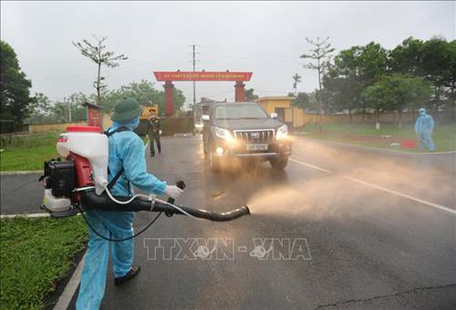 Phun khử khuẩn xe vào đón công dân cách ly |