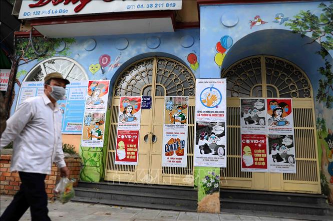 Tranh cổ động được dán, treo ở các trụ sở cơ quan, trường học là thông điệp rõ ràng về sự đoàn kết trong cuộc chiến chống đại dịch COVID19 - Ảnh: Thanh Tùng/TTXVN |