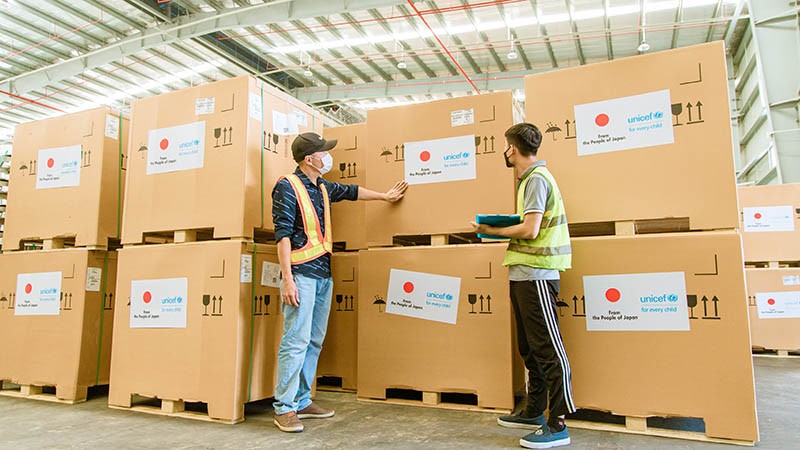 Việt Nam đã tiếp nhận 300 tủ lạnh bảo quản vaccine do Chính phủ Nhật Bản tài trợ thông qua Quỹ Nhi đồng Liên hơp quốc (UNICEF), trong đó 100 tủ lạnh đã đến cảng thành phố Hồ Chí Minh và 200 tủ đã đến cảng Hải Phòng vào tháng 9 vừa qua.